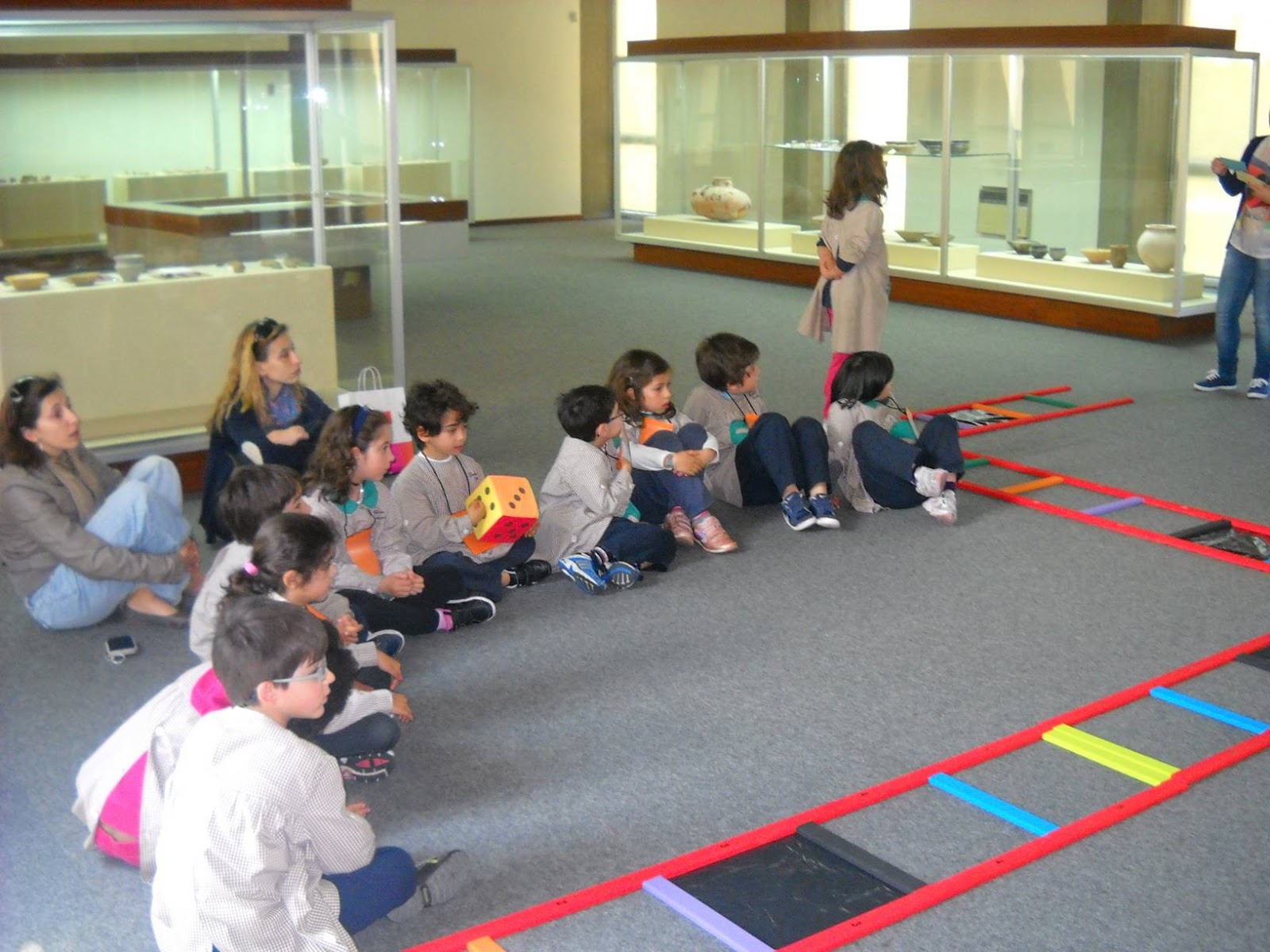 Esta atividade consistiu numa visita orientada às exposições permanentes com especial enfoque em algumas peças de relevo. Após a visita os alunos foram divididos em grupos e, de acordo com o número que lhes saiu em sorte ao lançarem o dado, iniciaram o jogo. Ao acertarem nas respostas às questões que lhes foram colocadas a respeito do que viram na visita inicial, avançavam duas casas, se errassem recuavam igualmente duas casas.
