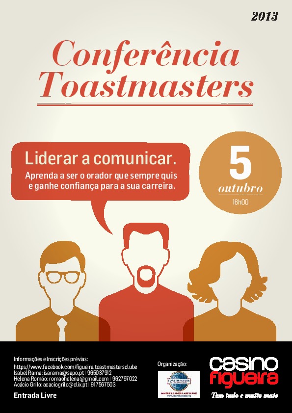 O ”Figueira da Foz Toastmasters Club” vai organizar no Casino da Figueira da Foz um evento de comunicação sob o tema geral “ Regresso ao Futuro”, no sábado dia 05 de outubro das 16h00 às 19h00.