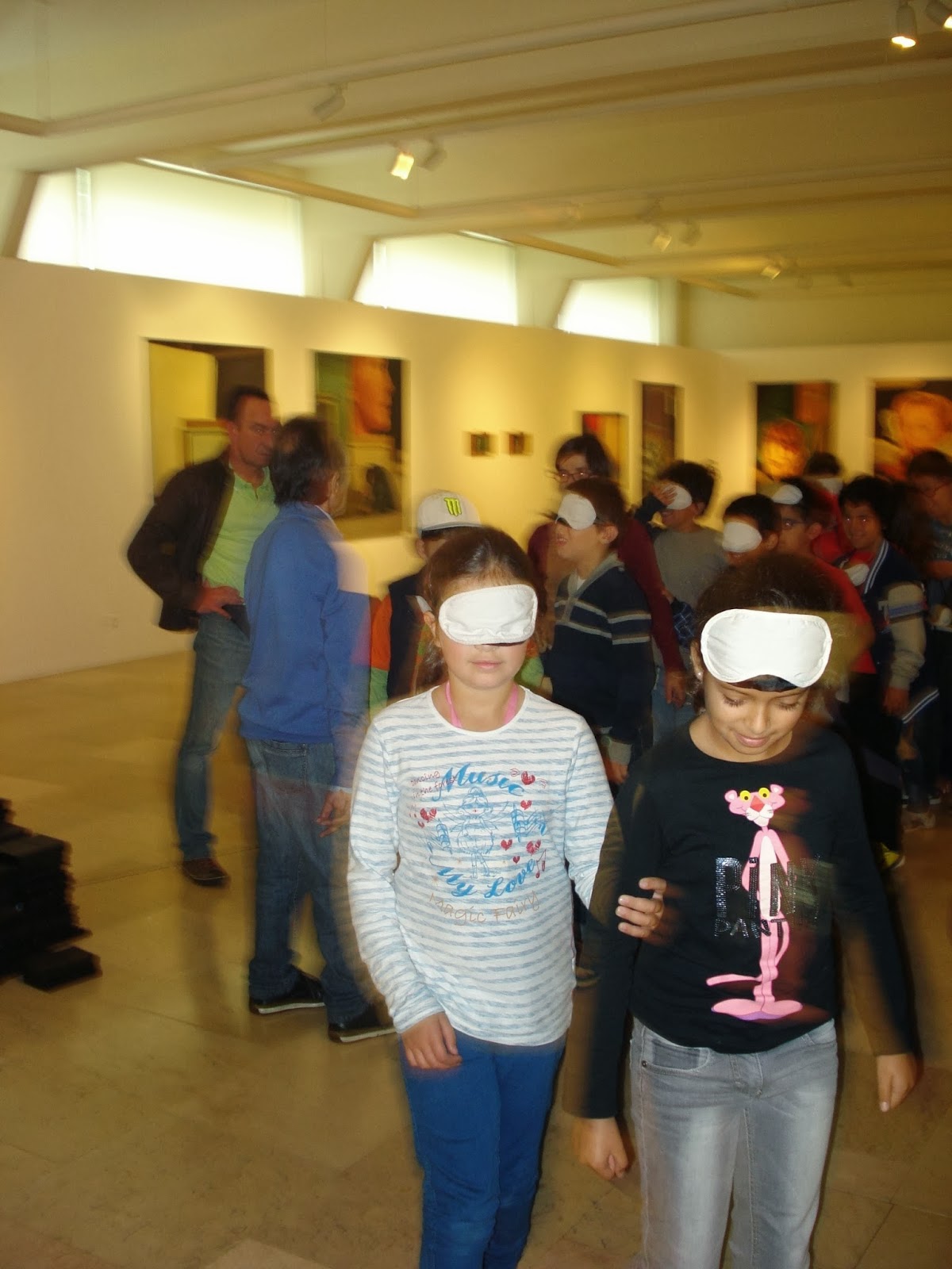 Alunos das EB1 Rui Martins e das Abadias e do 1º ano da Escola João de Deus tiveram a oportunidade de experienciar algumas situações do dia a dia de um cego ou amblíope como: o aprender a usar a bengala, o ser guiado “ajudado” por alguém, e o reconhecer de objetos pelo tato e pelo som.